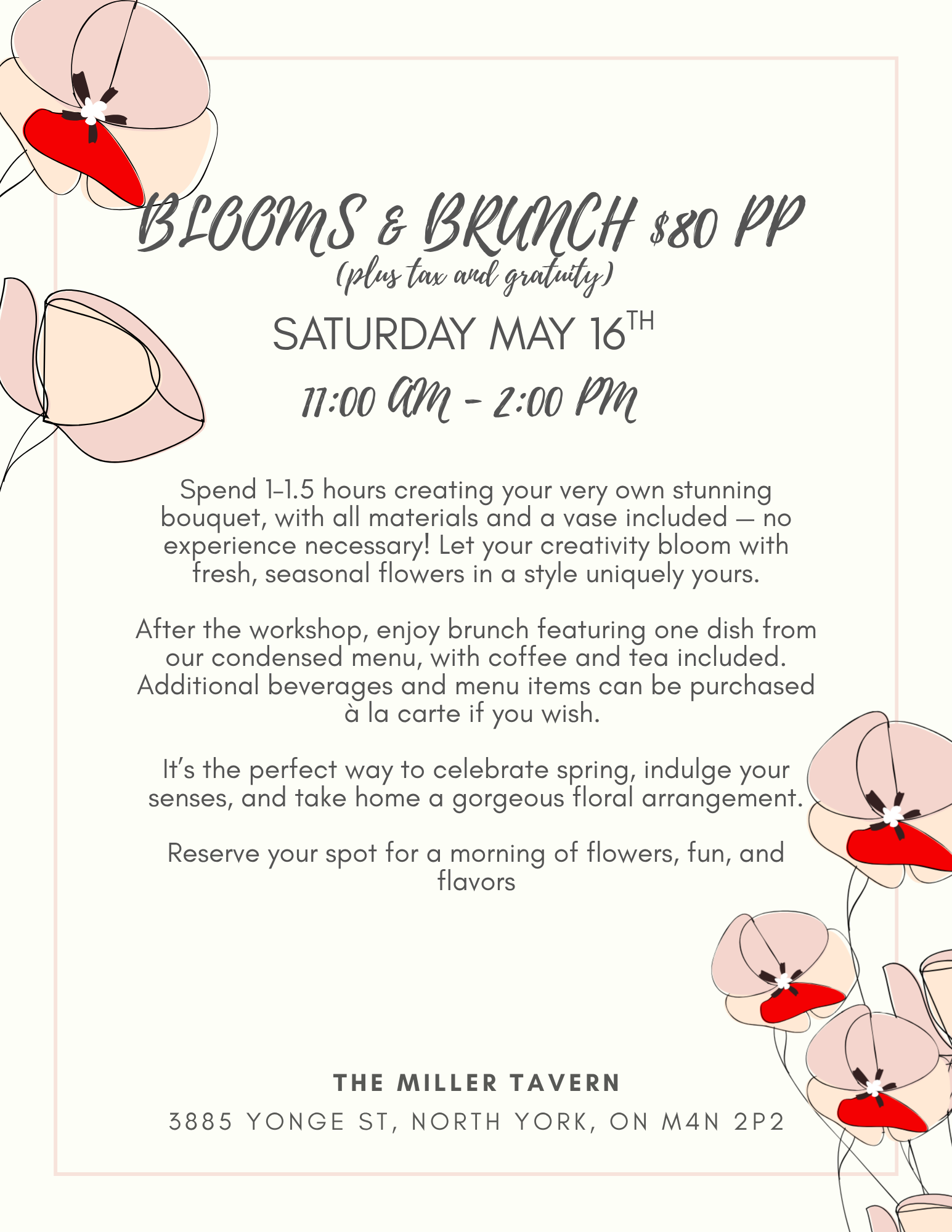Celebrate spring with a beautiful morning of creativity and dining at The Miller Tavern.