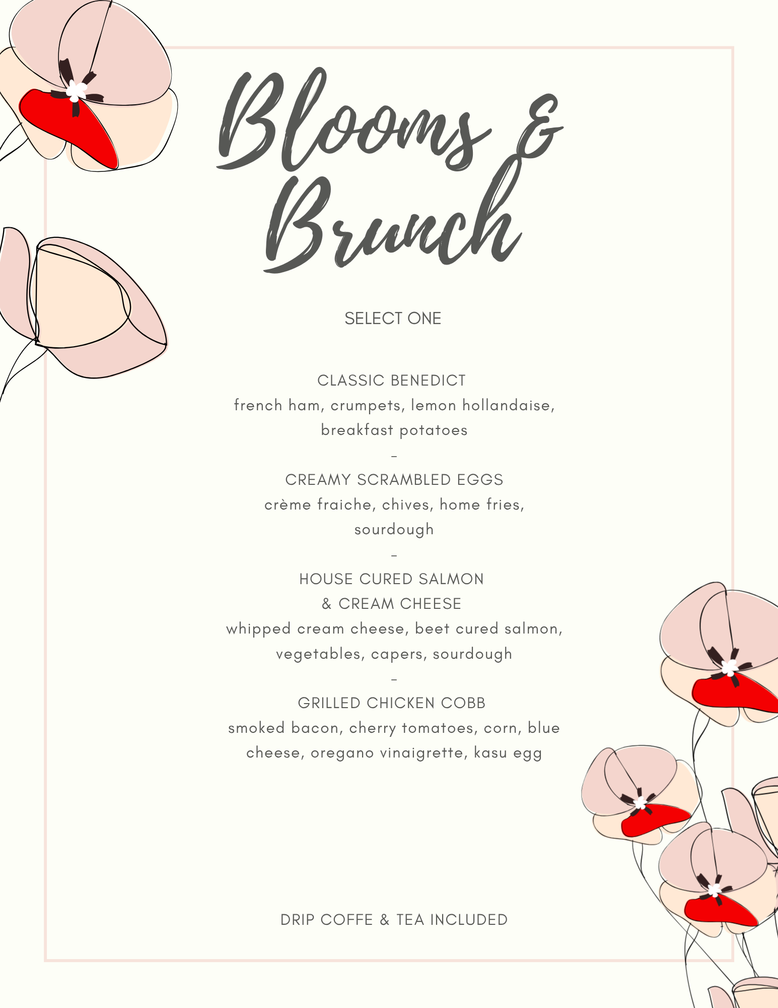 Join us for our Flower Workshop & Brunch on Saturday, May 16th—where you’ll create your own stunning bouquet using fresh, seasonal blooms, followed by a delicious brunch experience.